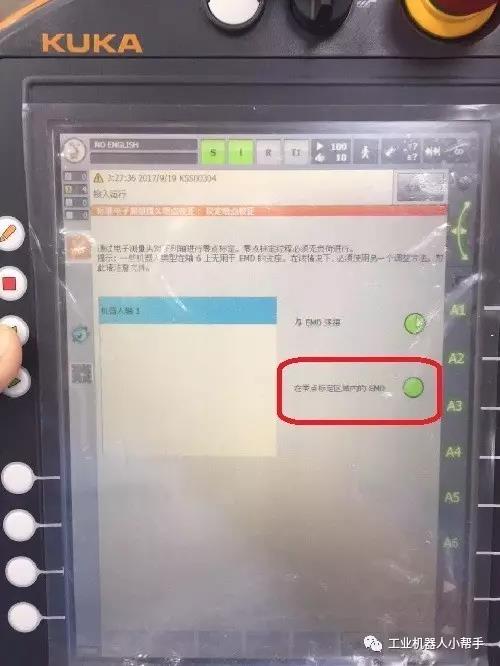 step 4:點擊示教器主菜單鍵,選擇投入運行-調整-EMD-標準-執行零點標定;