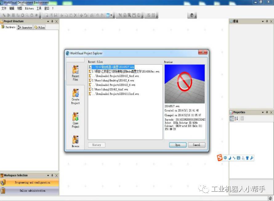 將電腦改成與機器人同一IP段,網線機器人與電腦連接,打開Workvisual軟件(以下為WV)。